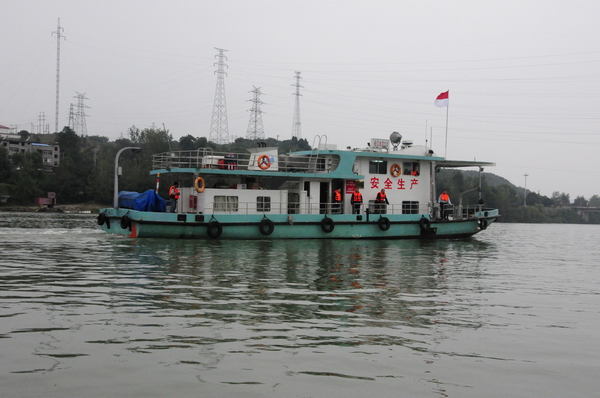 记者随水文测报人员一同登上水文测船,扑面而来的马达轰鸣声震耳欲聋,船舱内闷热的空气让穿着厚厚救生衣的工作人员汗流浃背。