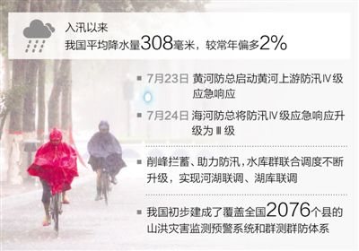 为了应对接下来可能发生的流域洪水,张家团介绍,国家防总督促科学调度三峡、丹江口、小浪底等骨干水利工程设施,加强江河堤防、护岸、涵闸、泵站等重点部位的巡查抢护,提前做好蓄滞洪区运用准备。