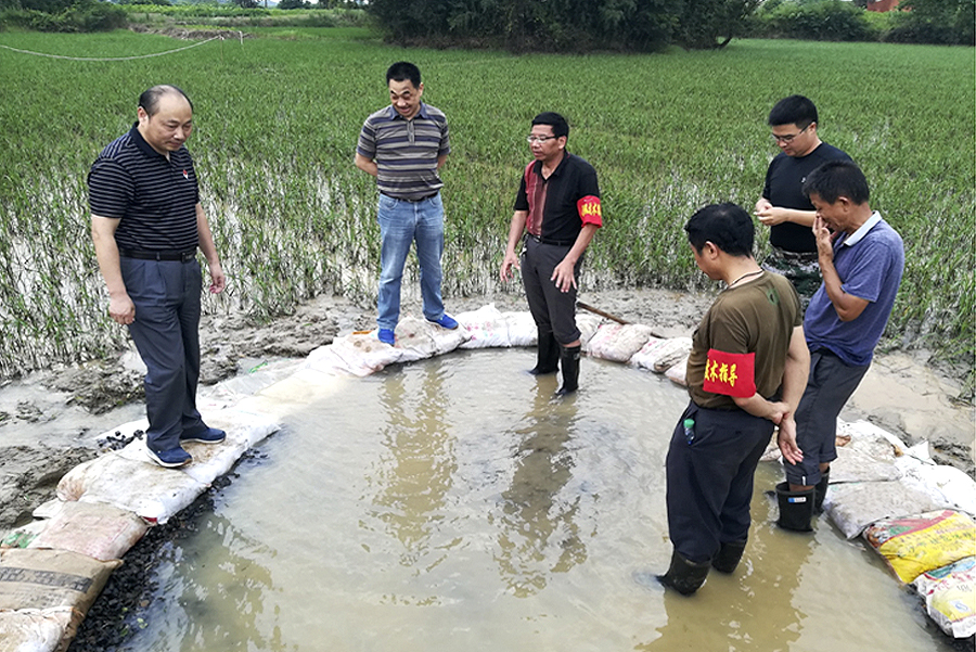 7月7日,国家防总江西组查看瑞昌市赛湖堤一处堤脚冒水险情