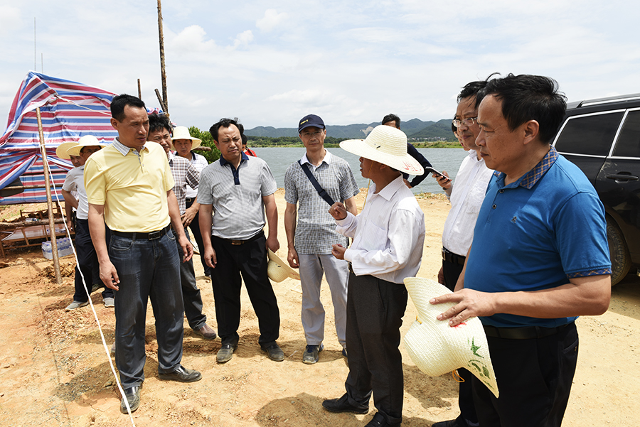 7月7日,国家防总江西工作第二小组在九江市都昌县鄱阳湖区东风圩堤听取汇报