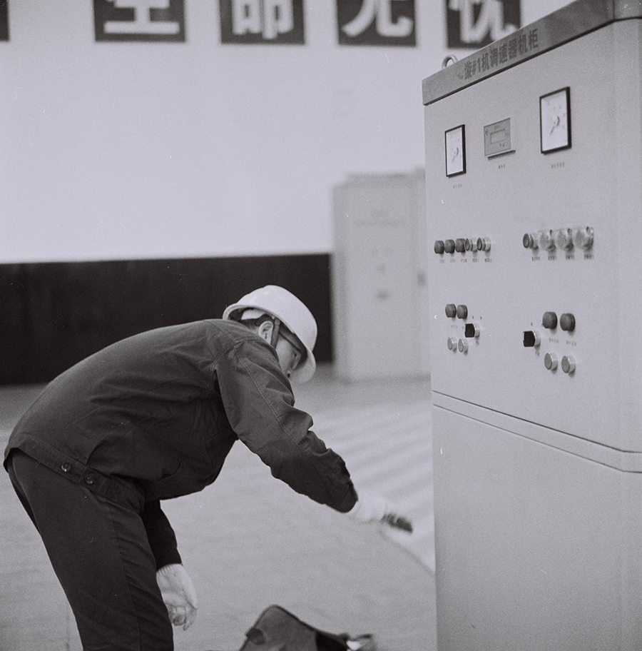 图为小漩电站漩#1机组检修人员在调速器工作场景